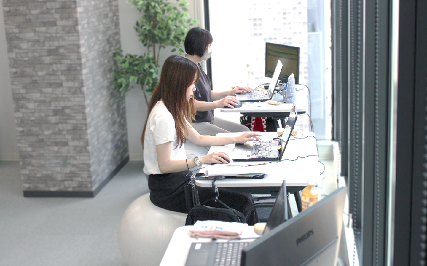 皆さん相談や打合せが必要な場合は写真のように隣や向かい合わせで作業を行うことが多いですね!