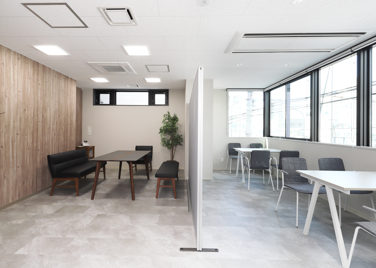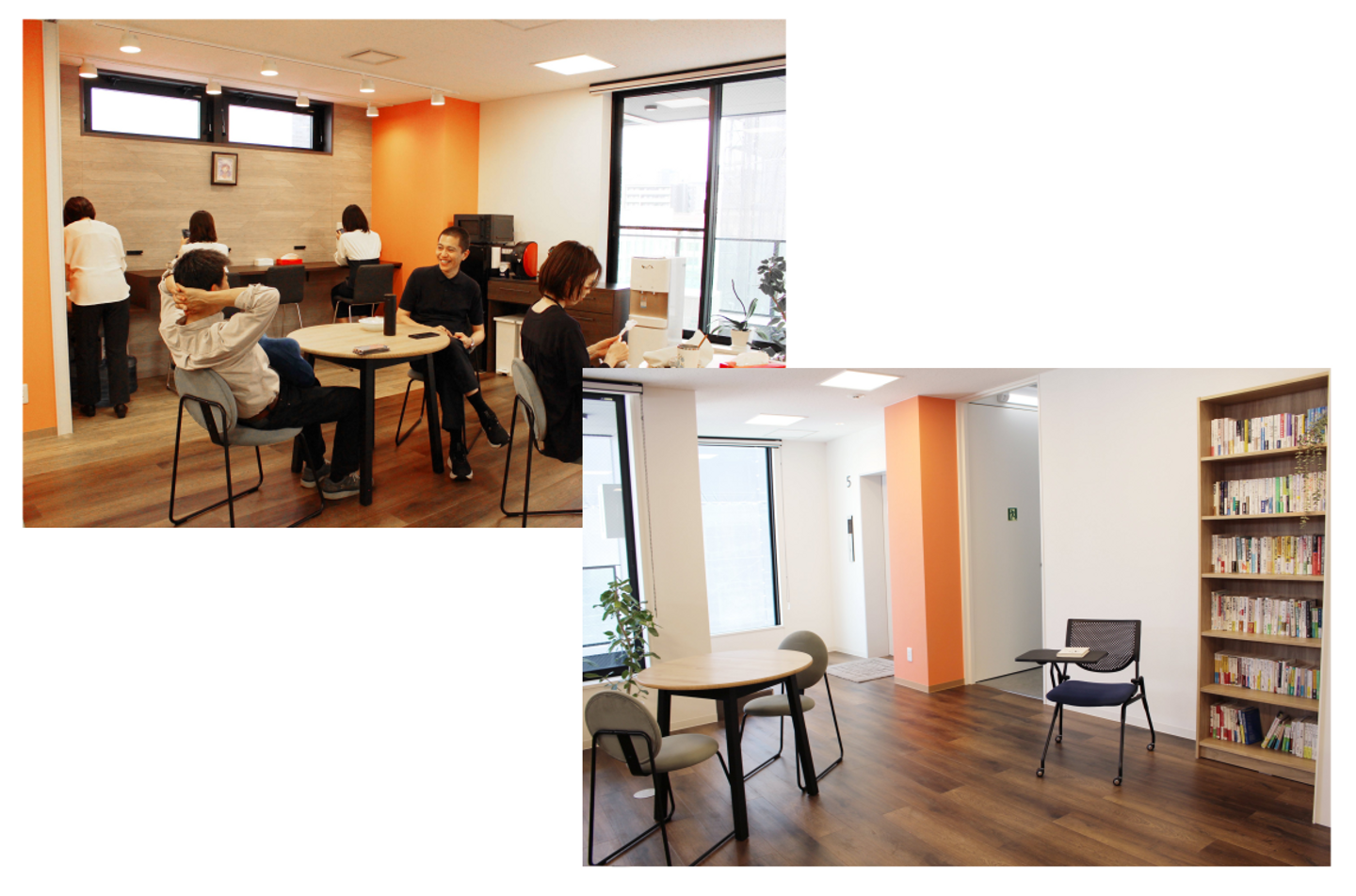 ちょっとした打ち合わせや気分転換にもぴったりで、こころもスッキリできる社内カフェスペースです。