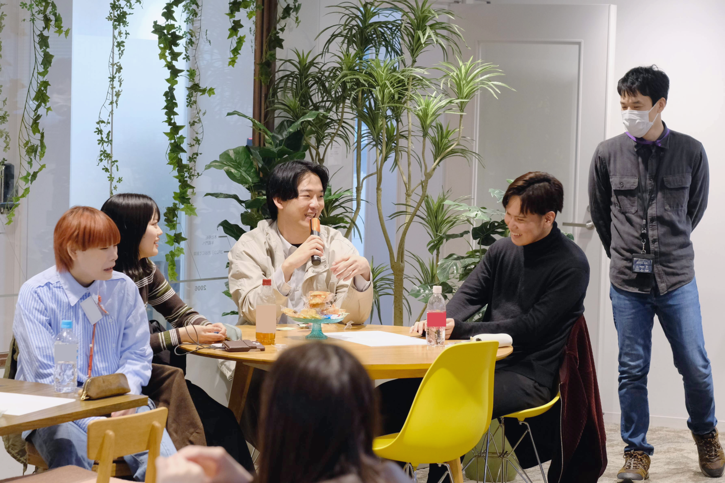 仕事終わりの社員たちも話しかけにきました。