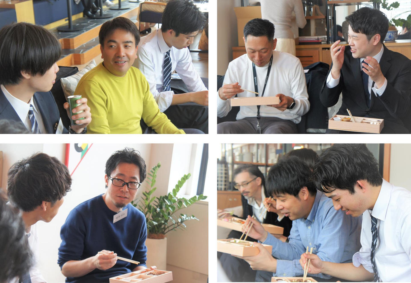 入社式のあとは、新入社員の皆さんとウフル役員で一緒にランチをしながら、趣味の話や学生時代の思い出、若いころの失敗談などざっくばらんに話す機会もありました。