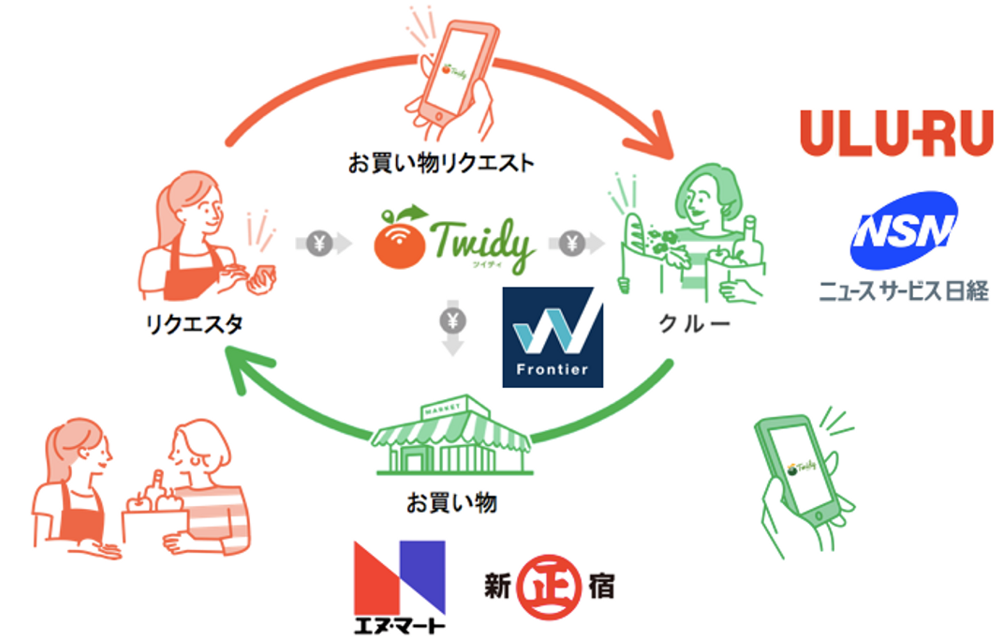 主婦向けクラウドソーシングサービス「シュフティ」を運営する株式会社うるる(東京都中央区 代表取締役社長:星 知也、以下「うるる」) は、地域密着型のシェアリングエコノミー買い物代行サービス「Twidy(ツイディ)」の提供において、ダブルフロンティア株式会社(東京都千代田区 代表取締役:八木橋 裕、以下「ダブルフロンティア」)と協業提携し、実証実験を完了いたしました。