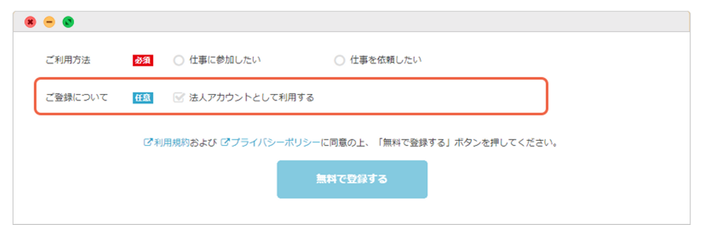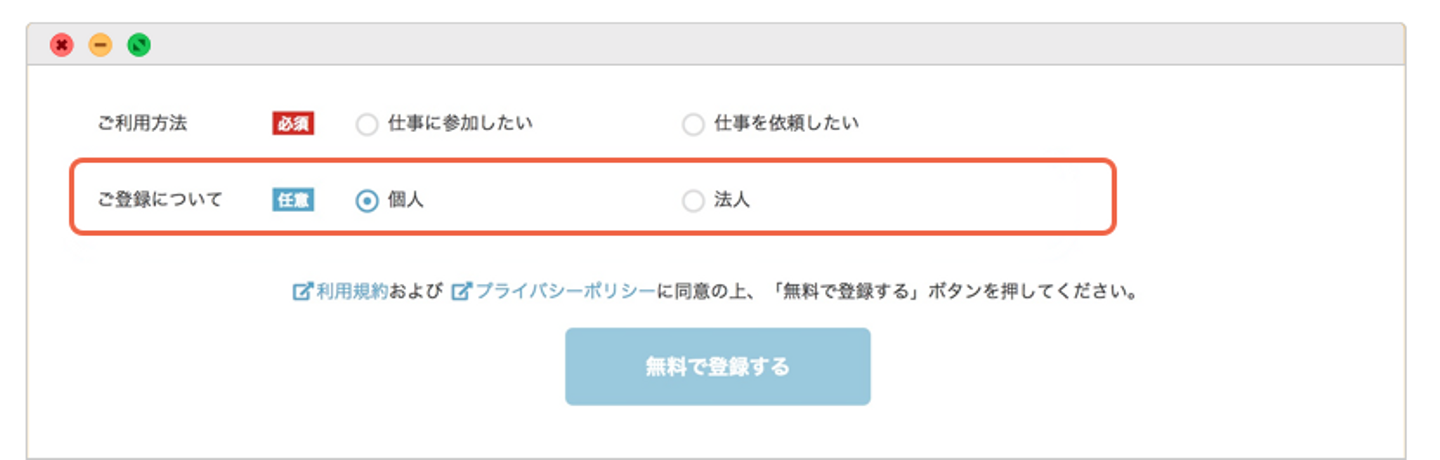 これまで法人利用の項目のみチェックボックスで出していましたが、
