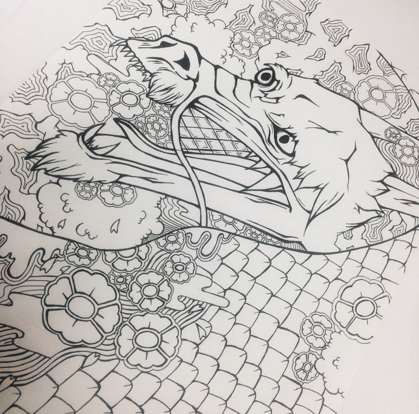 文化祭のクラスTシャツのデザイン(ボールペン画)