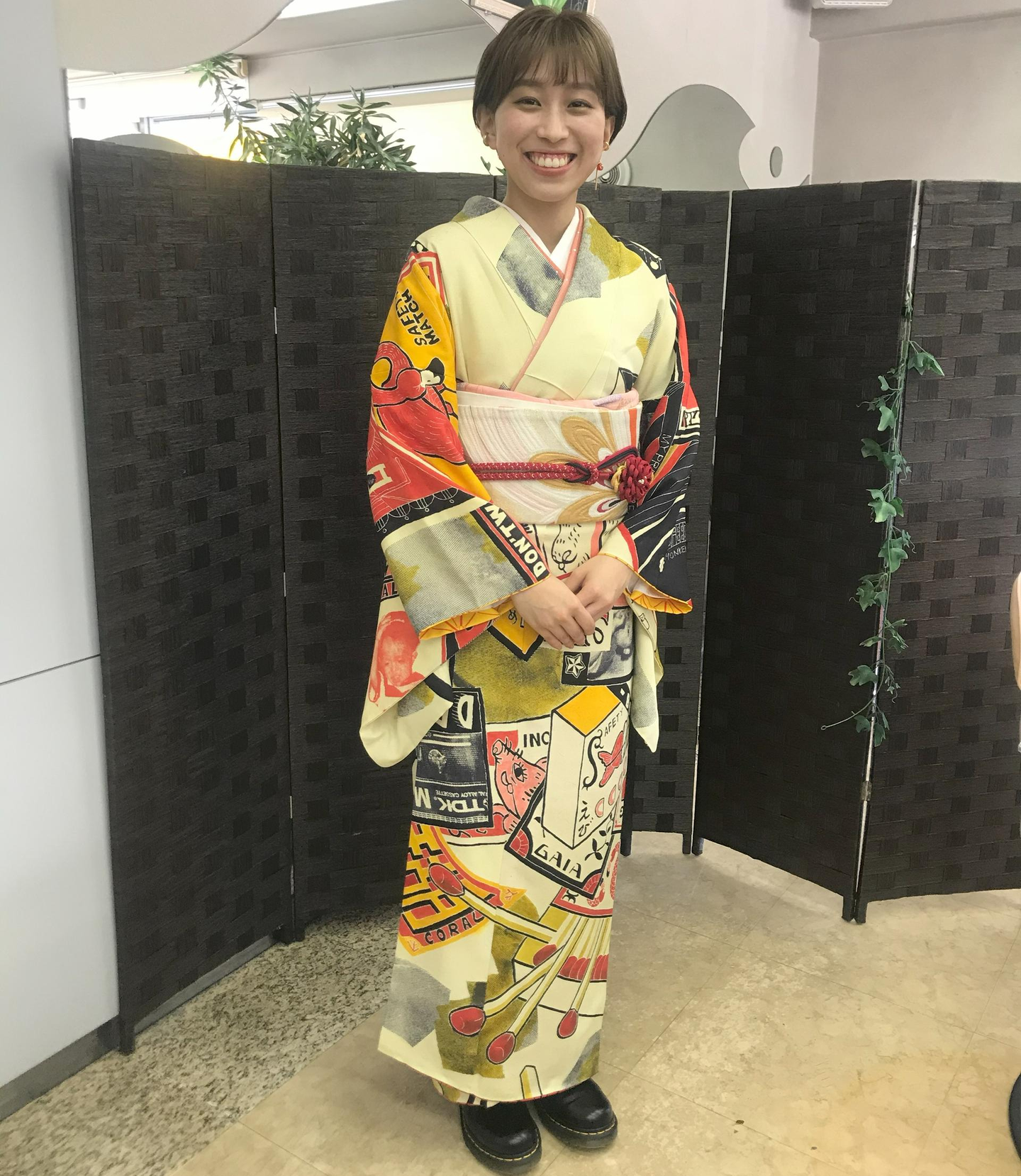 自分の歴史・人生・家族などをマッチのラベルデザインに込めた訪問着