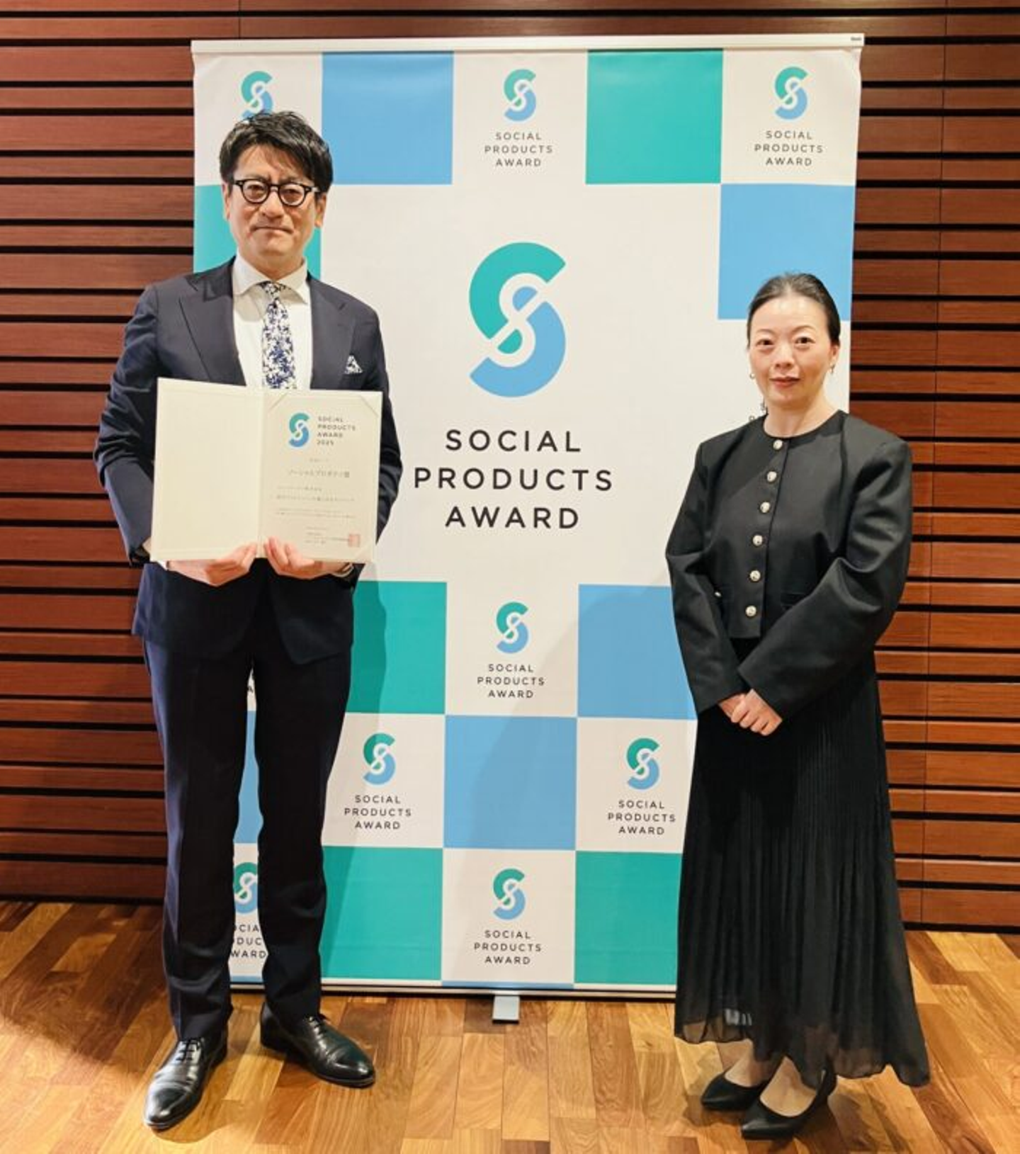 この度当社は、一般社団法人ソーシャルプロダクツ普及推進協会が主催した「ソーシャルプロダクツ・アワード2025」において、自社が開発した『海洋ゴミからつくった着られるエコバッグ』が「ソーシャルプロダクツ賞」を受賞しました。