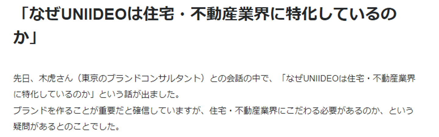 UNIIDEOは2008年に創業したわけですが、そこから”想い(基本理念)”は変わっていません。