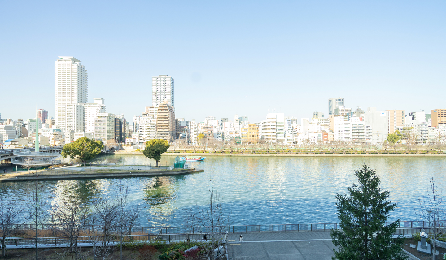 オフィスのある天満橋は、水都大阪を代表する名所のひとつ。天満橋は天下の台所と言われた当時、船着き場(八軒家浜)として水上交通の要でした。オフィスの窓から見える大川は、そんな水都大阪らしさを感じることができます。