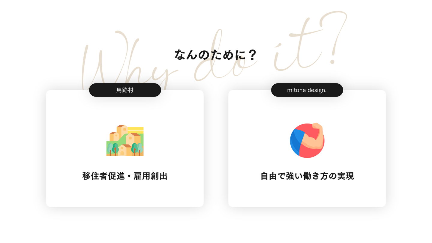 馬路村にオフィスを構える理由は「移住者促進と雇用創出」と「自由で強い働き方の実現」です。