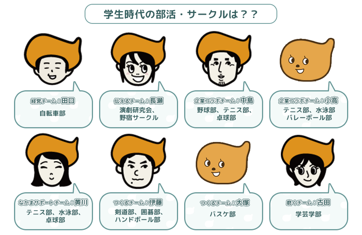 野宿サークルなど珍しいサークルに入っていた方も!!比較的運動部に入っている方が多いですね!皆さん、アクティブ!!