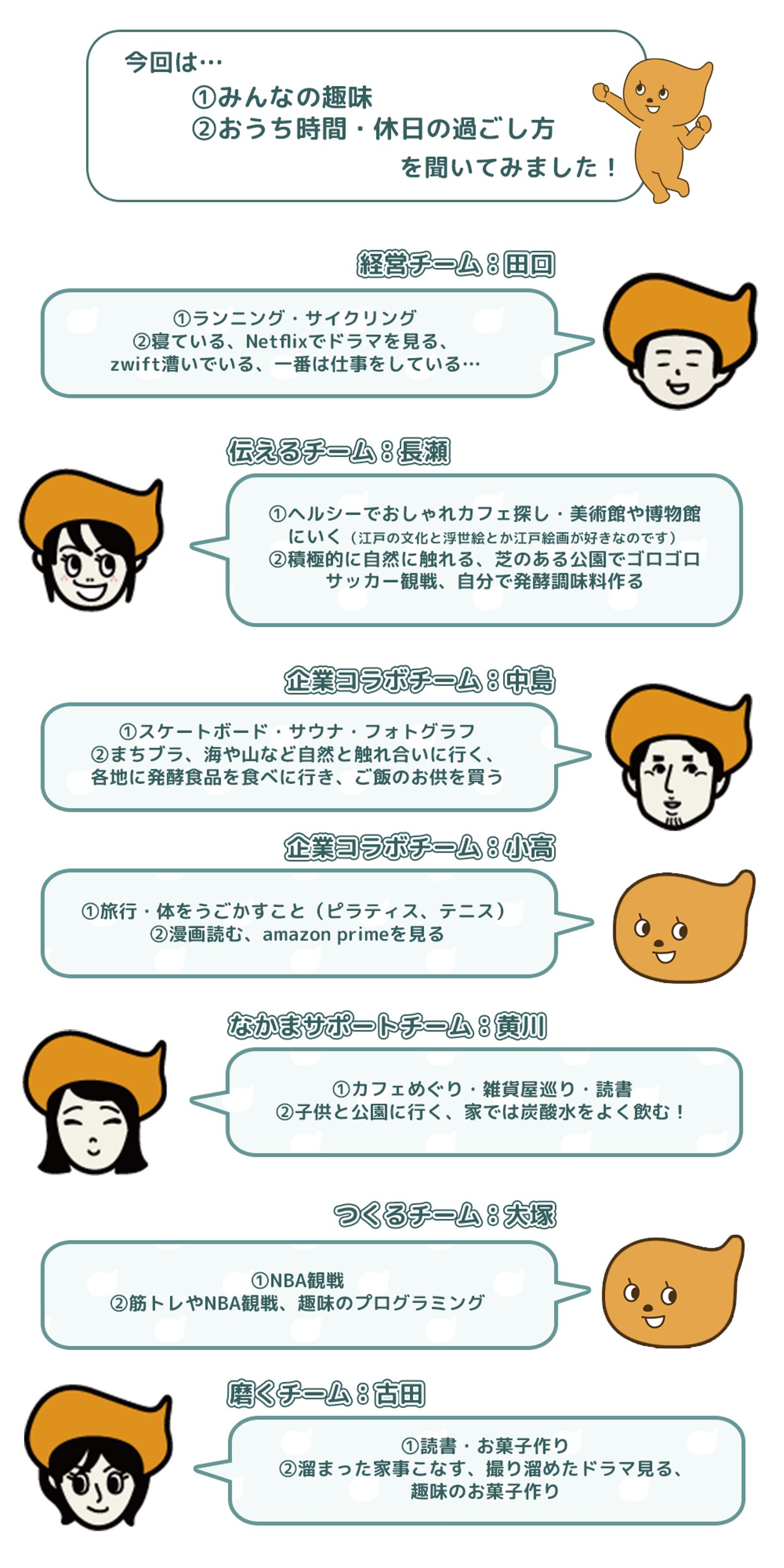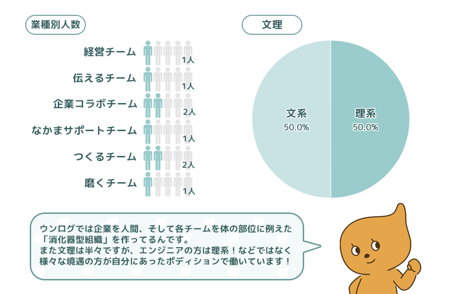 今回は、ウンログ社員について紹介しました。現在社員は10人程度で、それぞれみんな個性豊かでコミュニケーションを取りながら働いています。アンケートを取ることで、意外な共通点なども見つけることができました!