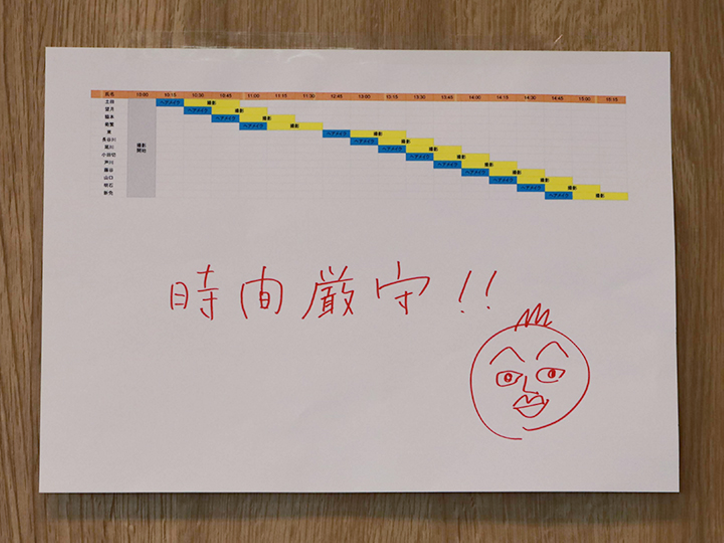 まず、撮影は香盤表っていうスケジュール表のもと動きます!