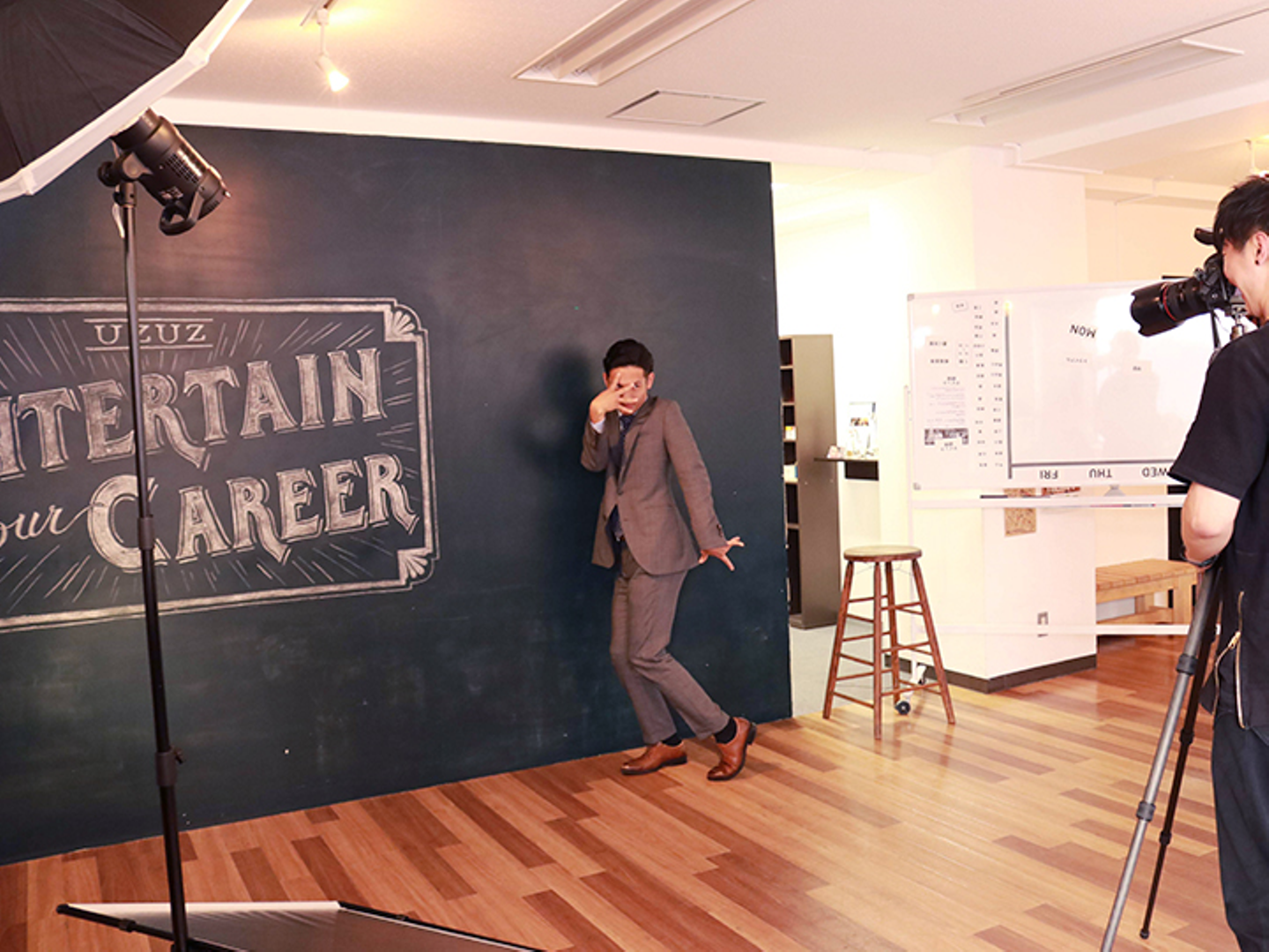 UZUZの社員紹介写真の定番である真面目からのフランク写真の撮影!