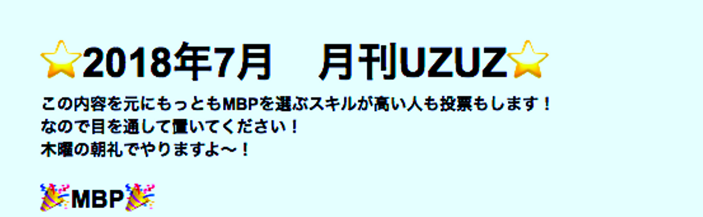 2014年からMBPが始まって・・・UZUZで2014年から「MBP」が始まり、当時は月刊UZUZで社員1人につき一人一人に200字ほど「この人の今月ここがすごい!」「ぶっ飛んでいることしているね〜!」などを書いていました。