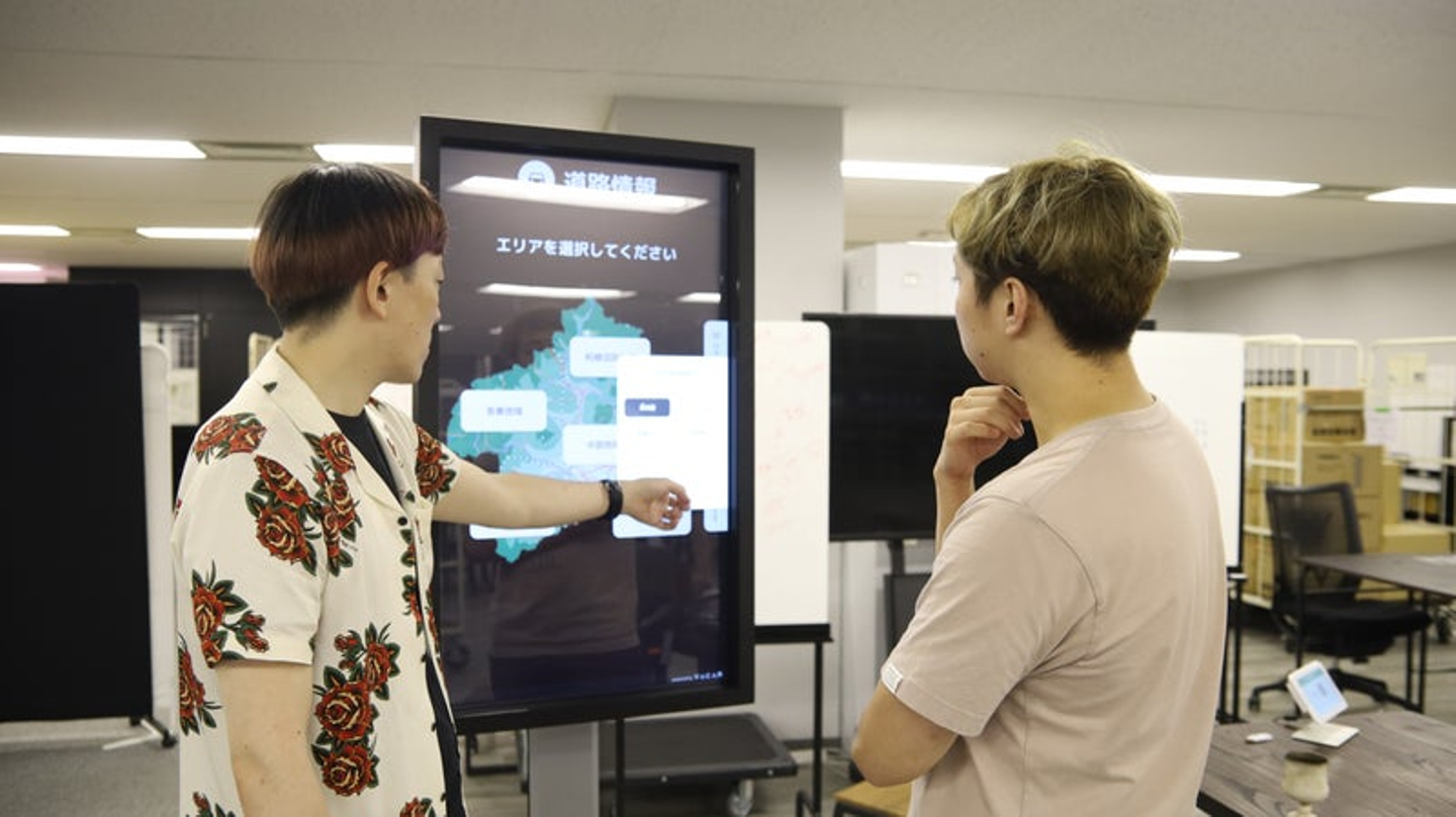 ちなみに今回はリリース前の実証をするために、サイネージをオフィスで実際に組み立てていました!