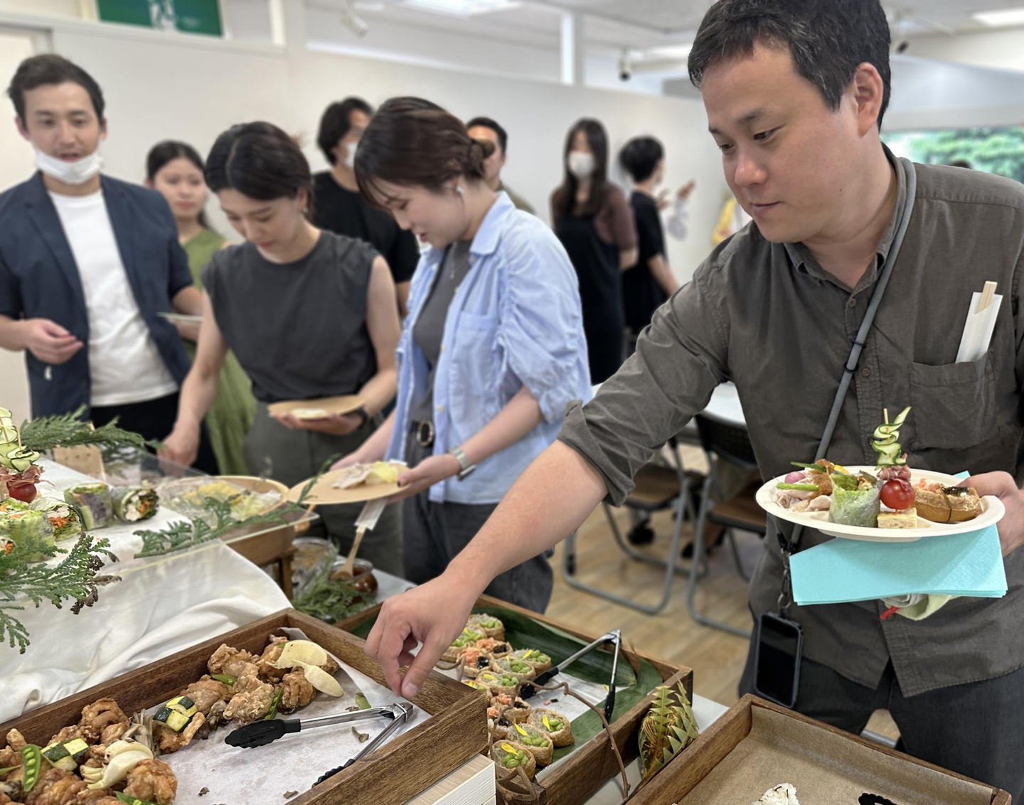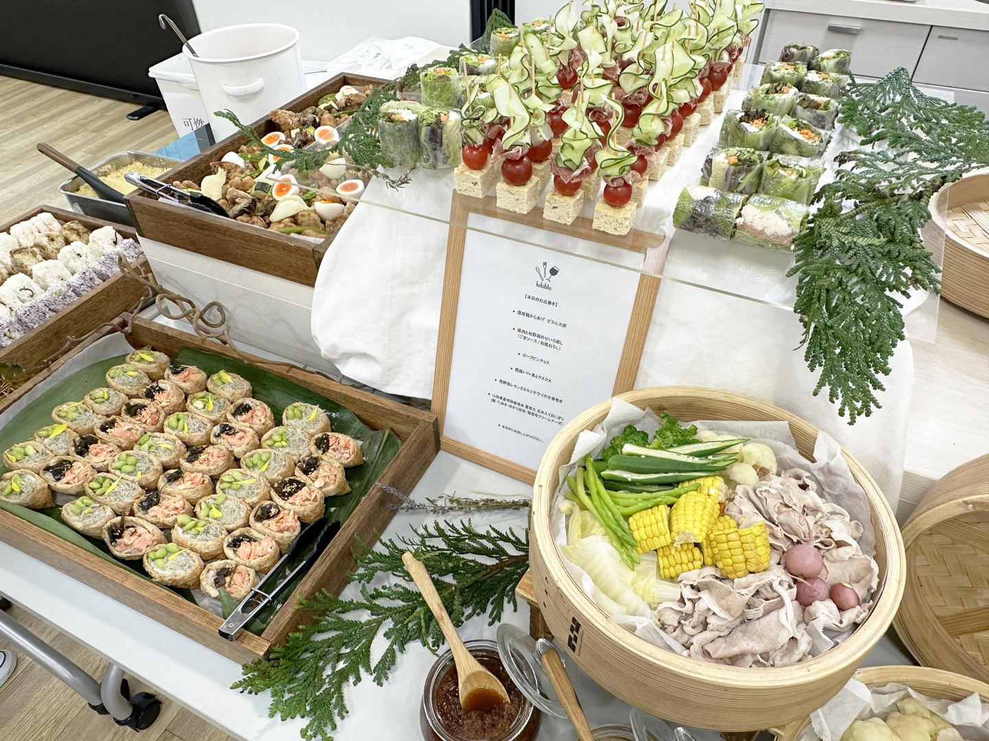 今回のランチ・イベントパートのテーマは「賑やか・華やか・ブレイクタイム」です!12期下期のKickoff MTGでは、お弁当を手配しゆっくりご飯をいただきましたが、13期上期では、ビュッフェスタイルでわいわい楽しみながら好きなものを楽しめるスタイルにしました。