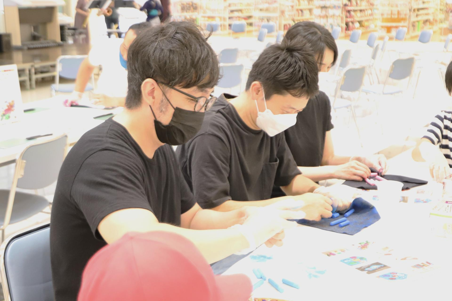 社員は、参加者がクレヨンをきれいに磨いてカットし型に入れる工程をお手伝いしました。