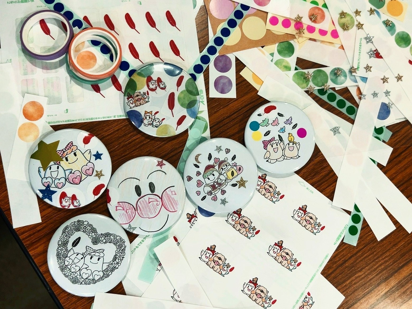 子どもたちが缶バッチをデザインするのをお手伝いしたり、ブースへの呼び込みなどを行いました。