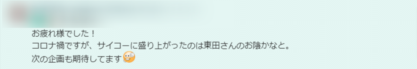 弊社でも、1年近く社内イベントを自粛しておりましたが、今回のイベントを通じて、コロナ禍でも社内イベントができることが分かりました。