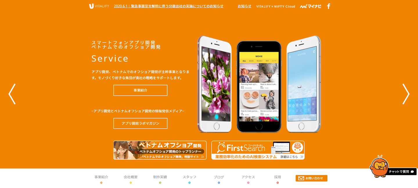 弊社は、DX時代をチャンスにする企業を増やすために、ベトナムでのオフショア開発や、iPhone、Androidなどのスマートフォン向けのアプリ開発、Webサービスの企画開発、運用、AIソリューション提供を行っているバイタリフィと申します!