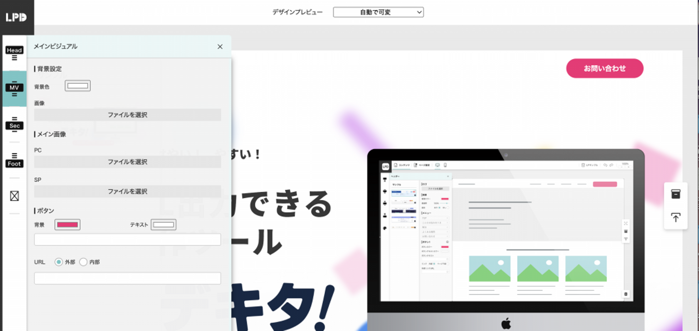 編集中のLPは編集画面でリアルタイムで確認することが可能です。