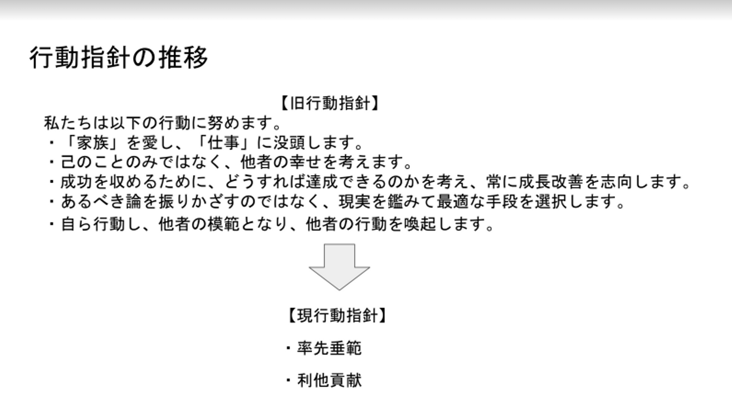 「日本を活性化する」といったミッションや「Vitalize」という会社の名前は人への影響力を持つような人材の宝庫になりたいから等。会社の柱となる考え方の背景などのまじめな話。