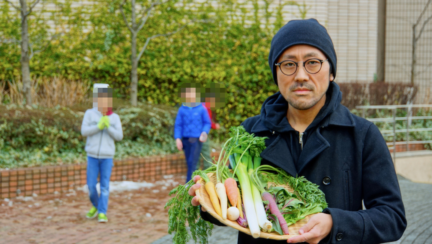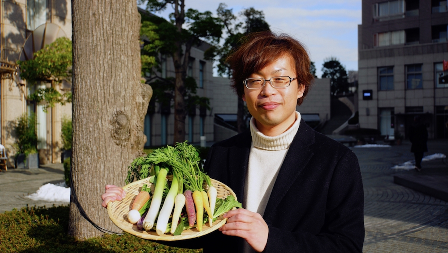 CAMPFIRE代表 家入一真氏と野菜。