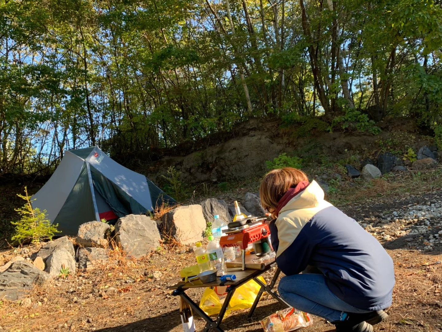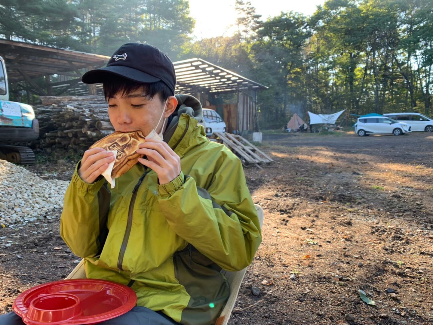 朝起きたら、昨晩も火の番人を務めたメンバーがすぐに火を起こします。その横で、テントの主がこれまた自前のホットサンドメーカーで朝ごはんを作ってくれました。さけるチーズを贅沢に使ったホットサンド、本当においしかったです!