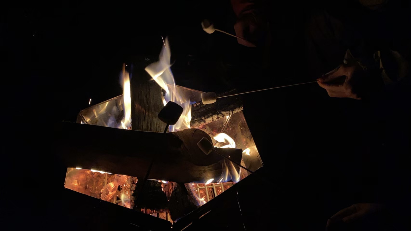 焼きマシュマロ、何度やっても焦がしてしまうのは私だけ?と思っていたら他の3人も同じくらい下手だったので、安心して焦げたマシュマロをいただきました。うち1名はマシュマロ全体に火が燃え移って真っ黒焦げに…!上には上がいるものだなあ(笑)。楽しかったら何でもOKだよね!