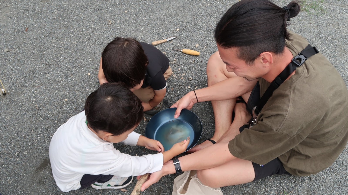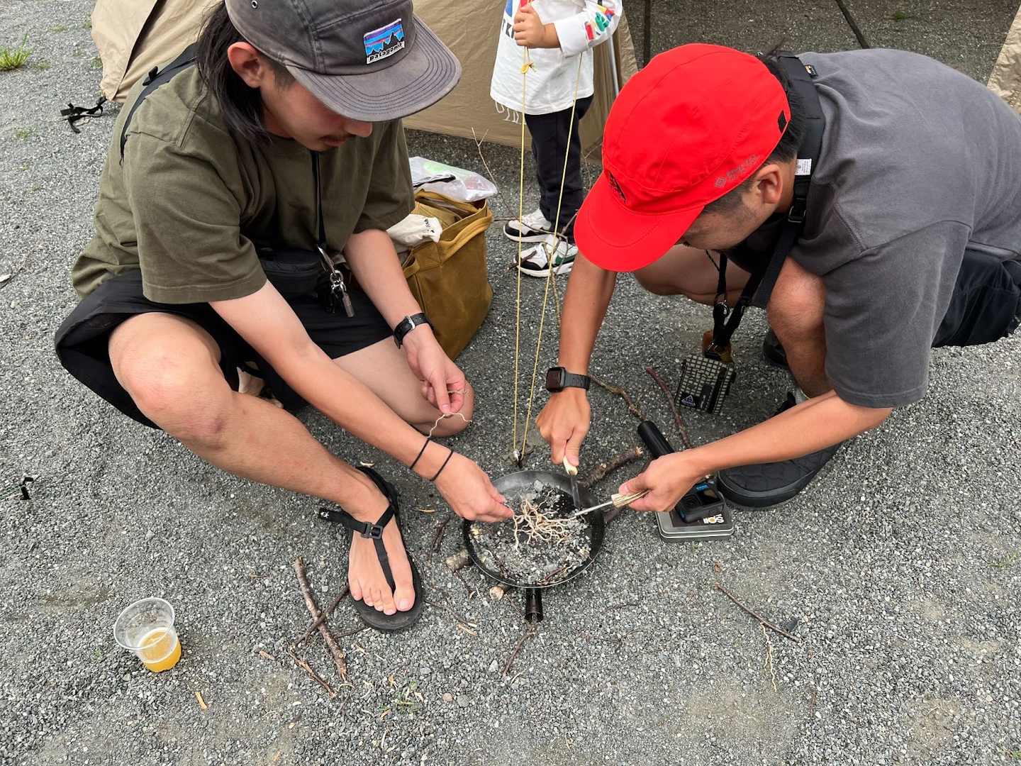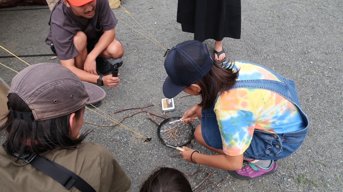 他にもブッシュクラフトの資格を持っている前原兄貴が指南する火おこし体験やフライパンのハンドル作成などアウトドアの遊びも楽しみました。
