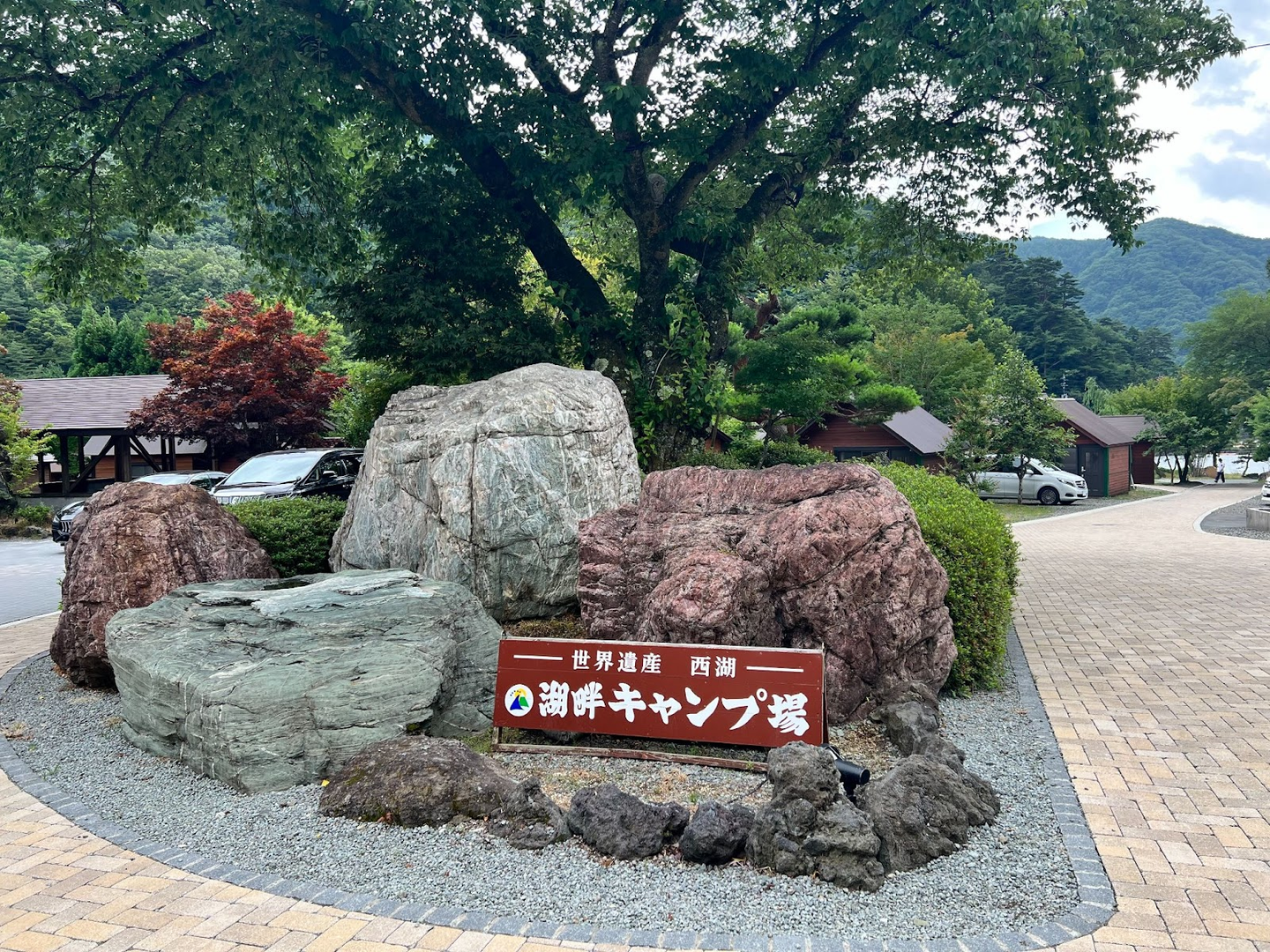 向かった先は河口湖インターから車で15分ほどにある西湖湖畔キャンプ場。なんとこちらのキャンプ場は事前の予約が不可!ってことは私たちみたいな急遽キャンプ場を探さないと行けなくなったメンバーでも安心していけるキャンプ場ということです。(ありがたい!!)