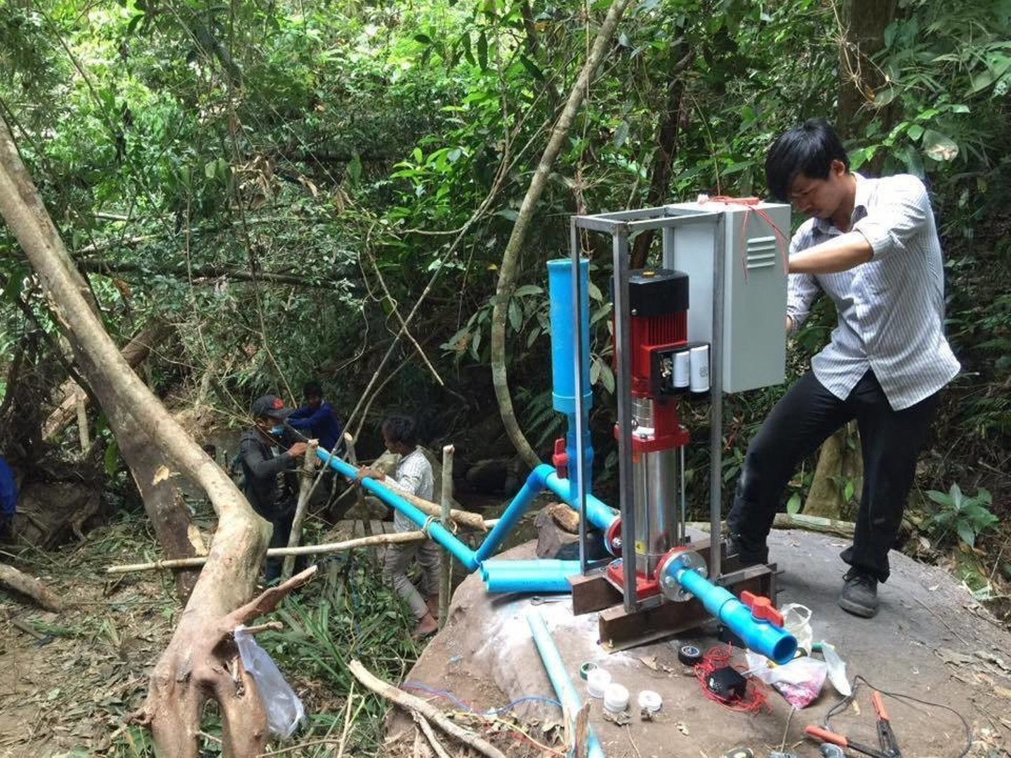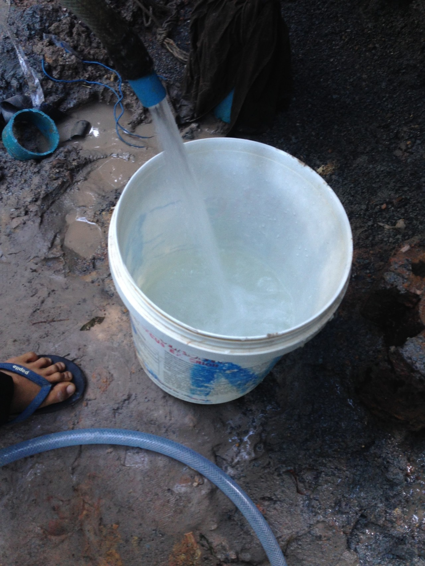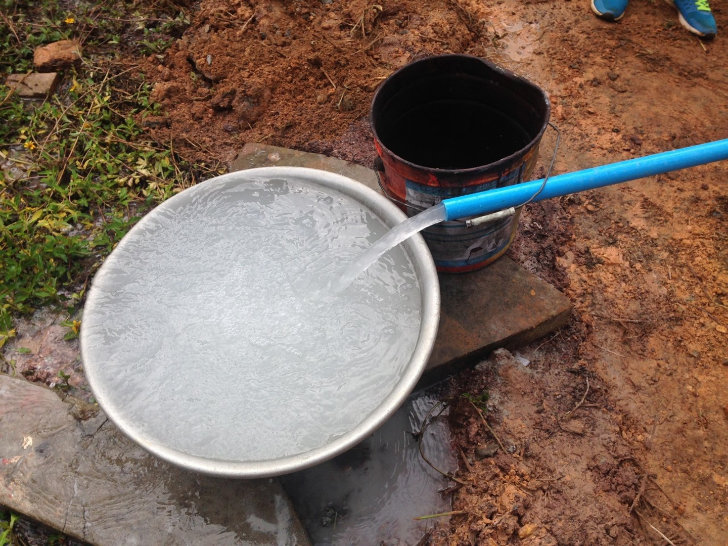 水源は100m以上先にあったがモーターの電源確保、30本ものパイプを繋いでの輸送と課題が多い解消法だった。