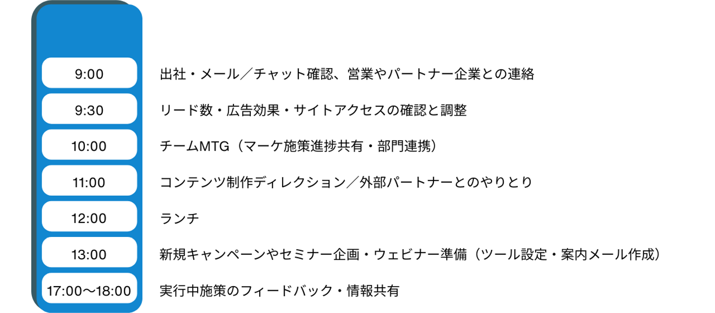 実際には、ウェビナーの企画・運営、デジタル広告の設計、ウェブサイトの運用ディレクション、コンテンツ制作の進行管理などを横断的に行っています。