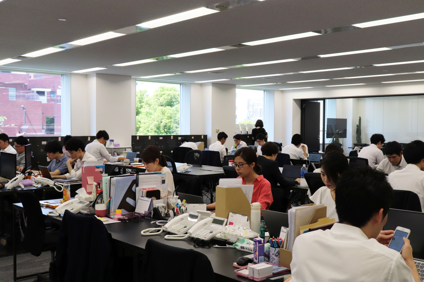後ろを振り返ればグループ会社のメンバー、隣をみれば事業企画部のメンバー…仕事をしている声を聞こえる距離です。