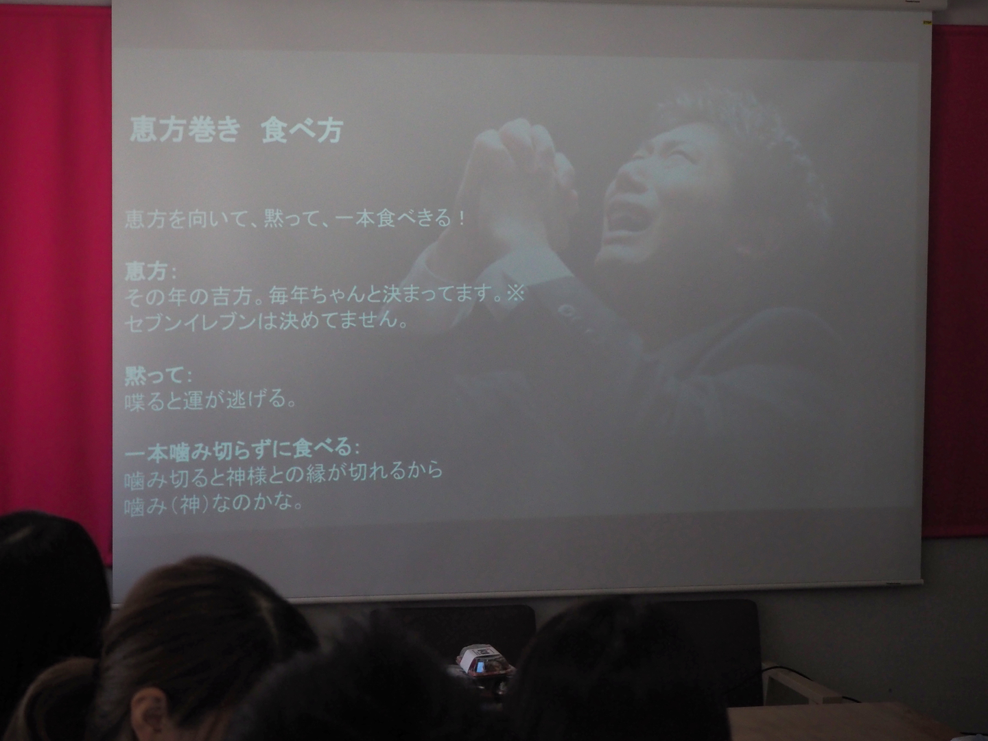 (節分や恵方巻きの成り立ちにみんな興味津々)