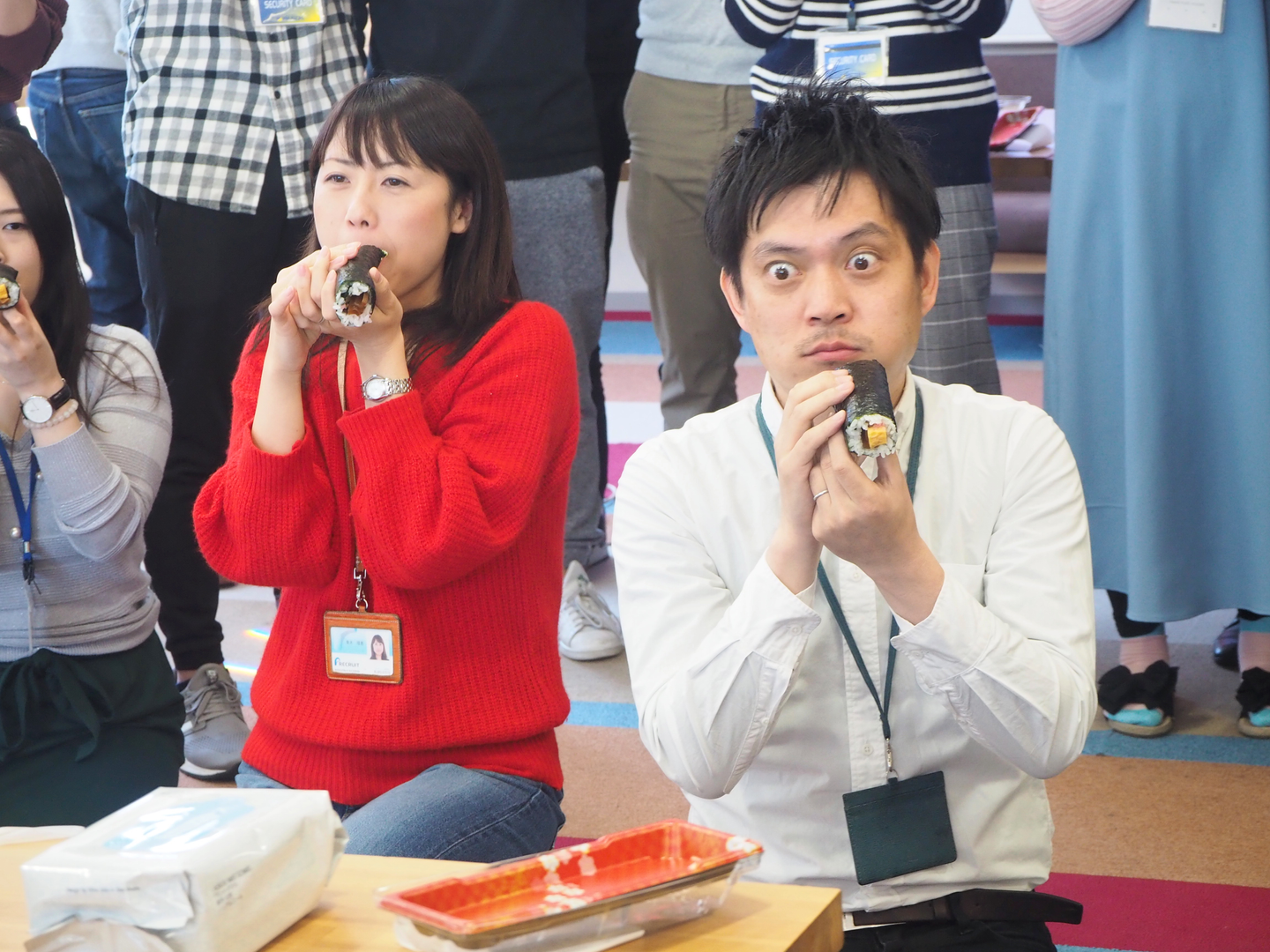 予想以上に長い恵方巻きに、一部の参加者は悪戦苦闘しながらも、参加者全員、心もお腹も満たされました!