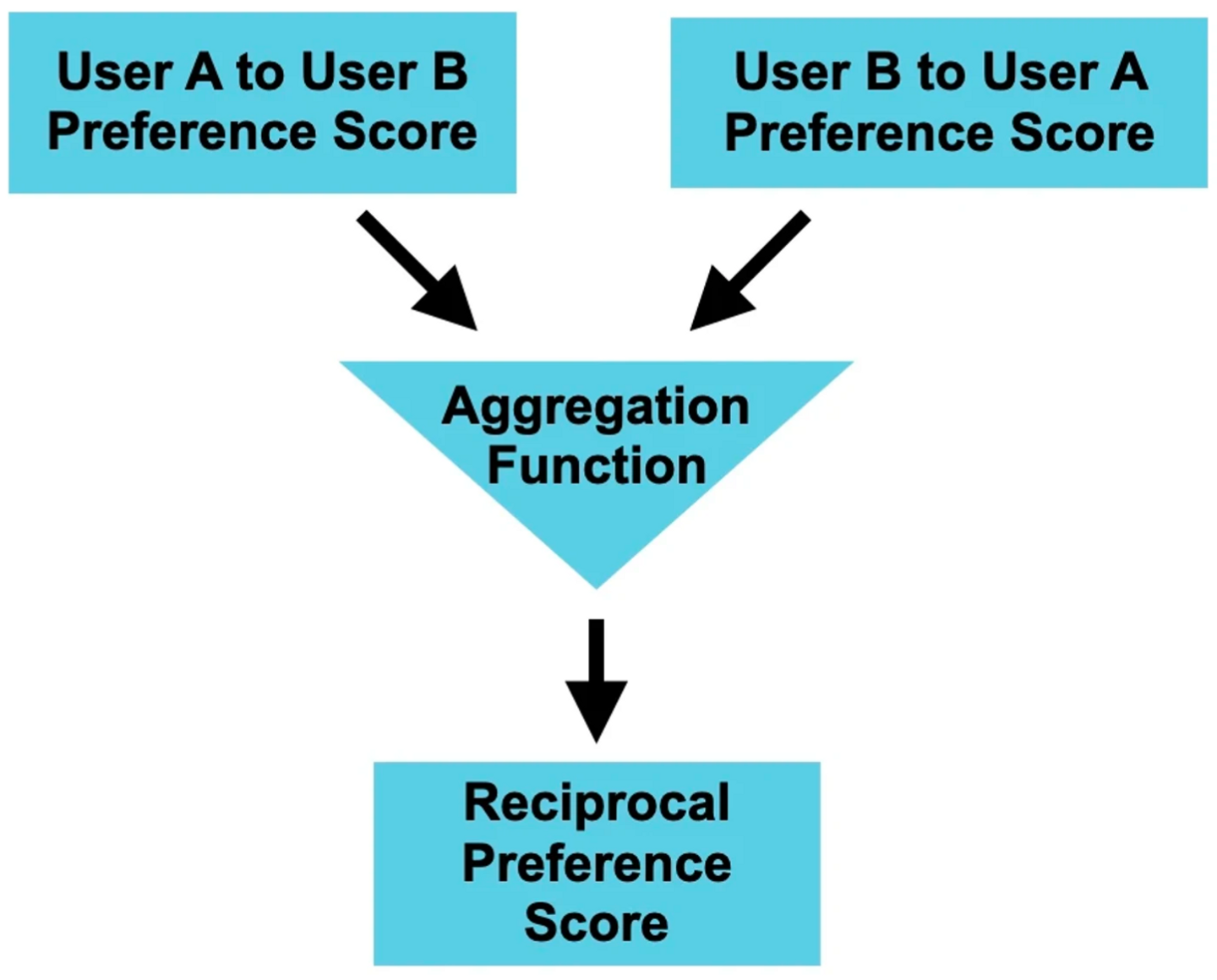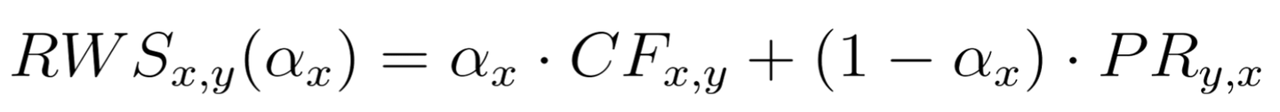 この論文では、オンラインデーティングを題材に、ユーザーの過去のインタラクション履歴をもとに各ユーザーに対して最適な集約重みを決定する手法を提案しています。具体的には、推薦を受け取るユーザーが推薦されるユーザーに興味を持つ度合い(CF)と、推薦されるユーザーがメッセージにポジティブな返答をする確率(PR)の2つのスコアを算出し、これらを重み付き線形結合で集約します。