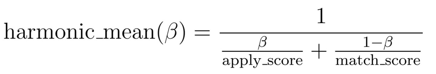 return 1.0 / (beta / apply_score + (1 - beta) / match_score)