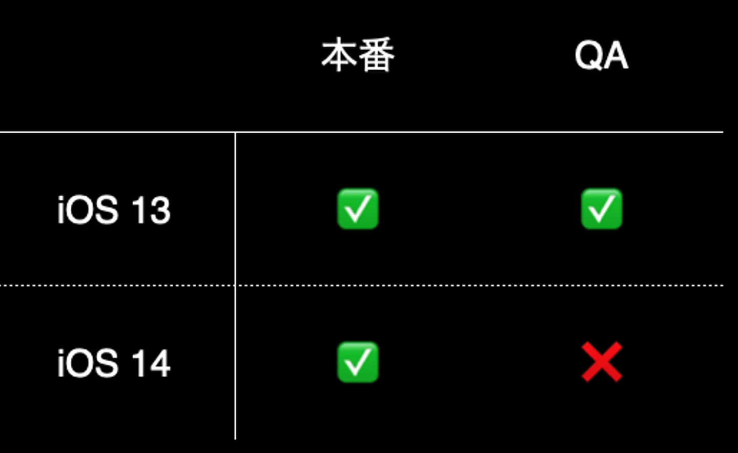 更に詳しく調査をすると、iOS 14 かつ QA版アプリ という条件でのみ Universal Links が動いていないということが判明しました。