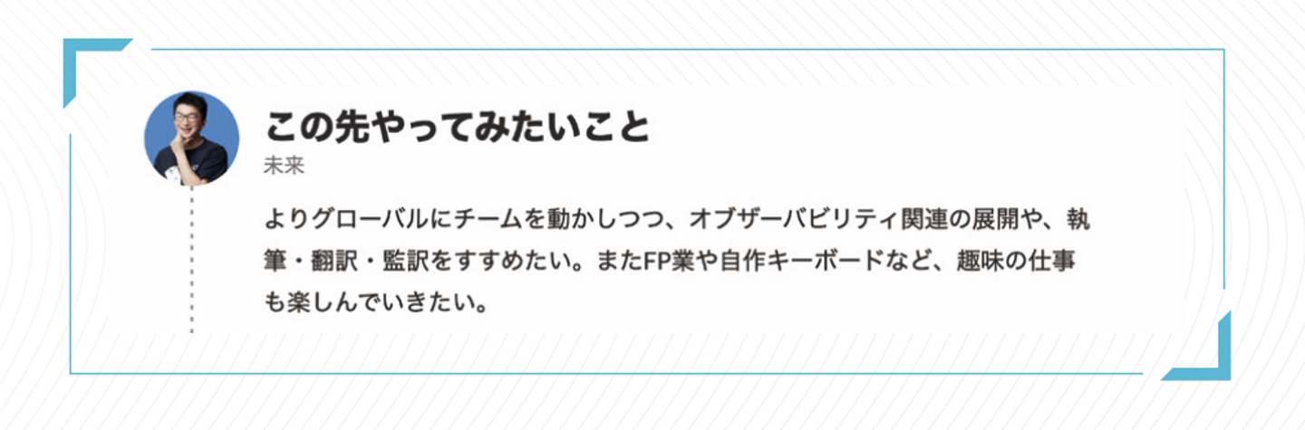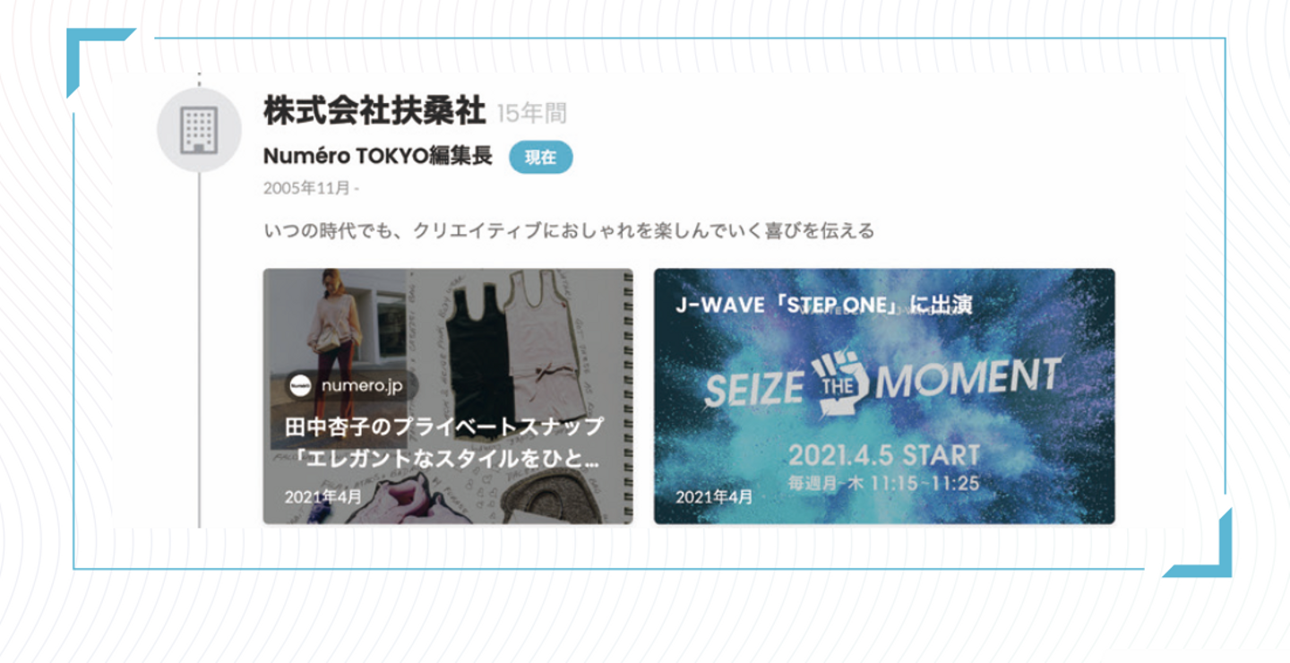 イメージを膨らませるために、#つながり方改革 プロジェクトの一環で制作した、各界の第一線で活躍している方々の経歴"Official Profile"を参考にしてみるのも良いかもしれません(ジャンルごとにまとめてみました)。