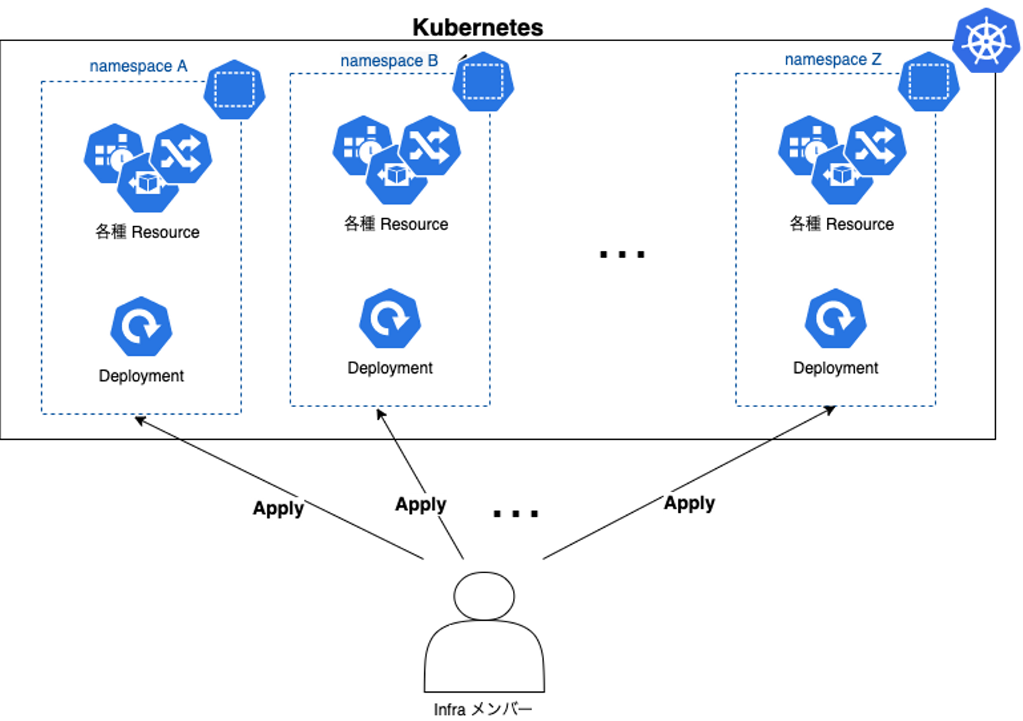 - 1つの Kubernetes namespace を所有する