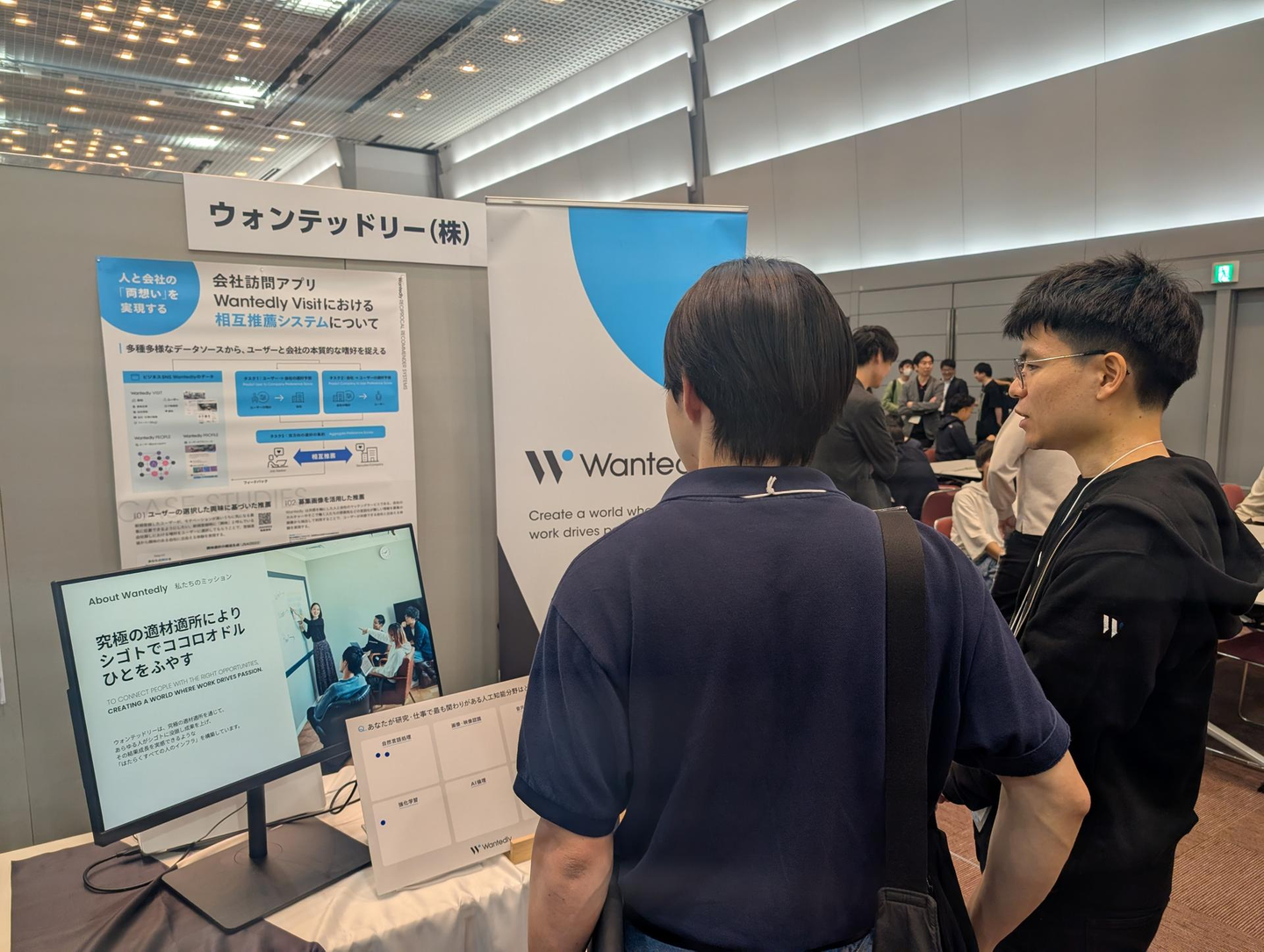 大会期間中は、弊社のデータサイエンティスト4名(市村、角川、林、右手)が現地に参加し、スポンサーブースを出展しました。ブースでは、ウォンテッドリーの推薦システム改善の取り組みを紹介し、アンケートにご協力いただいた方には弊社エンジニア・デザイナー作成の技術書をお渡ししました。4日間を通じて、推薦システムやLLM活用に関心を持つ多くの研究者・学生・企業の方々にお越しいただき、充実した技術議論と情報交換を行うことができました。