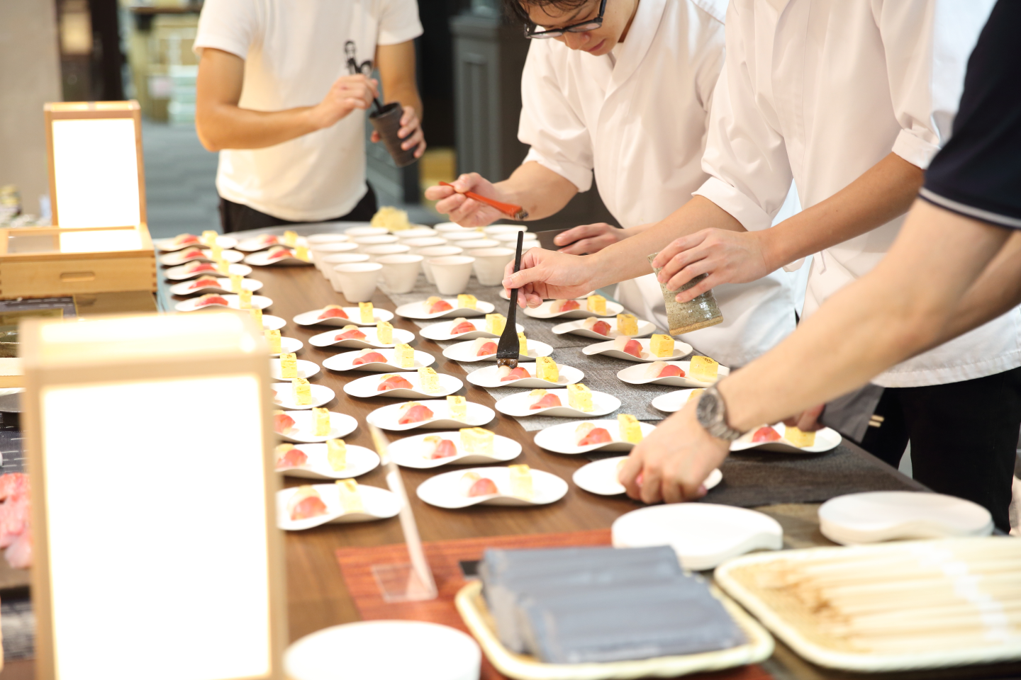 「SUSHI BAR」と題して、職人さんがその場で握ってくださるLIVE寿司を片手に、活発な交流が行われました。