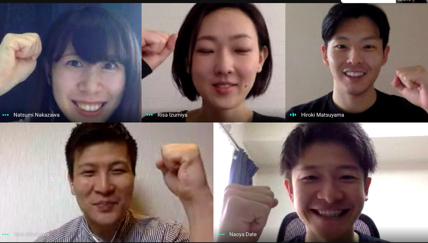 チームビルディング後に全員で意気揚々とガッツポーズ(和泉屋だけが半目でした…)
