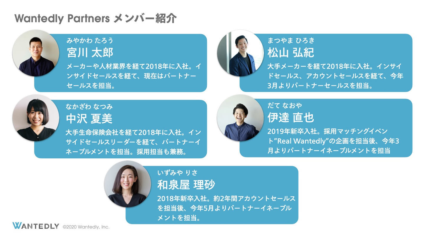 パートナー様による代理販売・運用代行の先にある事業成長に寄与することが、Wantedlyのミッション実現につながると強く信じて、チーム一丸となり邁進してまいります。