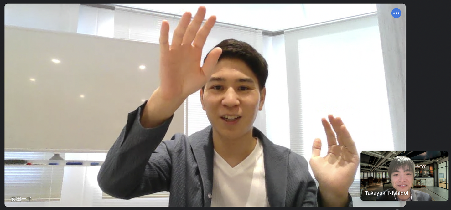 取材はオンラインにて。色々とお話いただきましたよ!(右下:西土井)