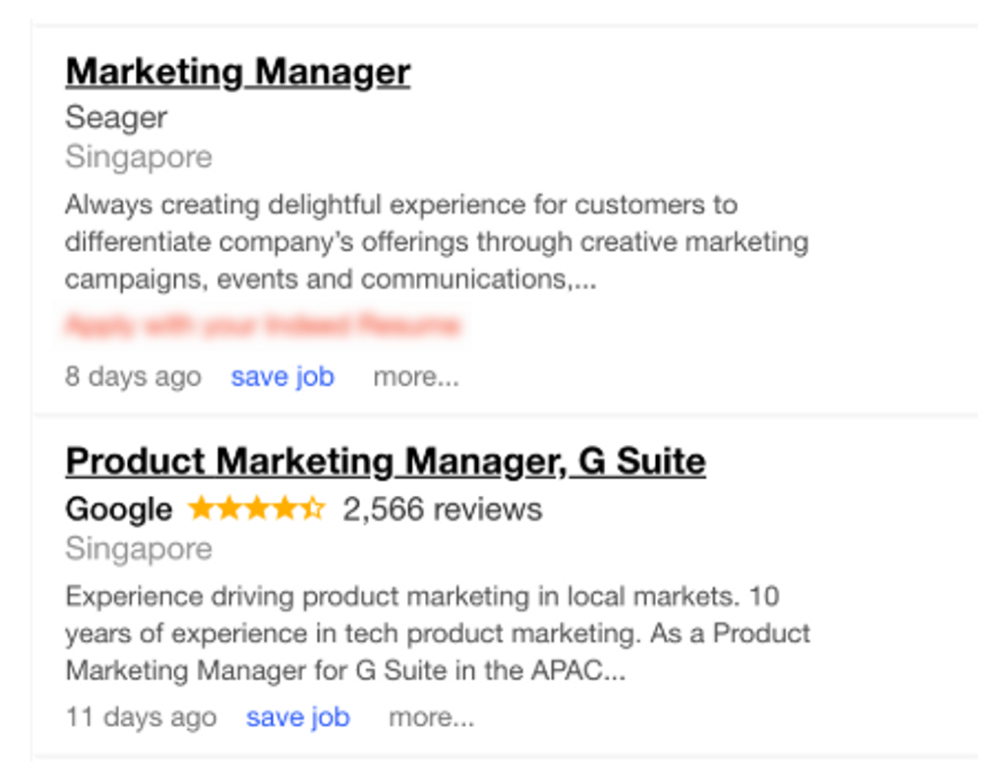Furthermore, let’s be honest: if you were looking for a marketing position, and saw a job ad from Google and Seager next to each other, which would you click on?