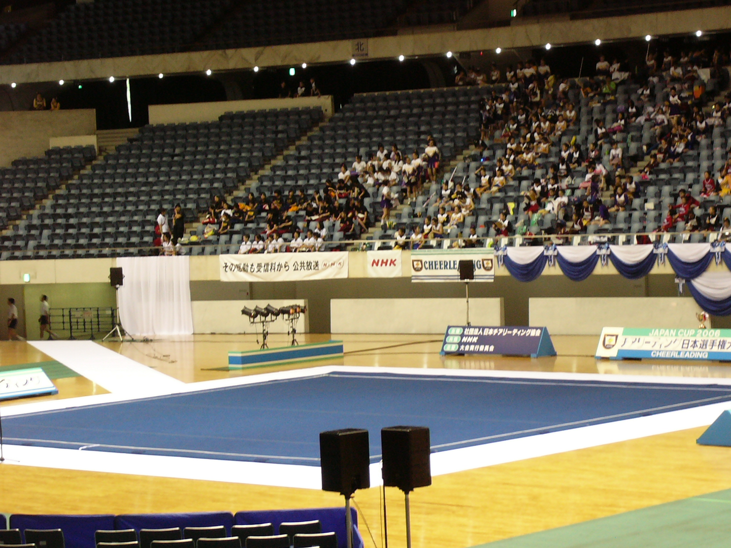 ↑チアの舞台である青マット。2分半の演技に全身全霊を注ぐハードな競技でしたが、みんなで気持ちを1つにしてノーミスの演技が出来た時の達成感が大好きでした。