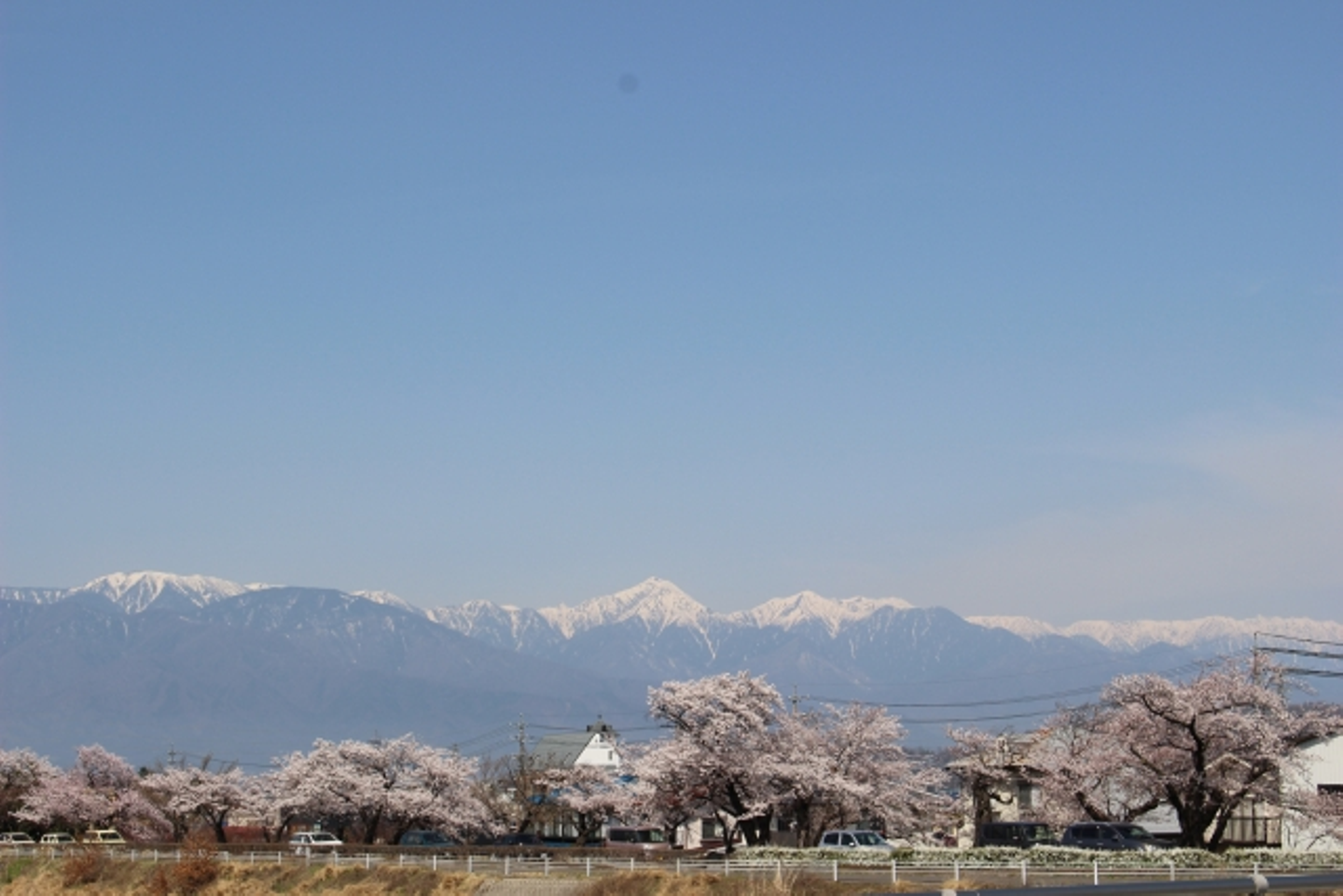 春は雪山と桜のコラボレーションを見ることができます。