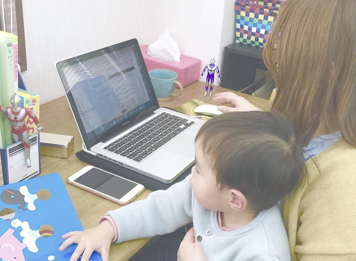 大変なところは、息子がだんだん大きくなってきて、会社の備品をいじるようになってきたことで目が離せなくなってきました(笑)床に落書きしたり、文房具を全部出してくれたり、会社中のお菓子を食べちゃったり。。。目が離せない分、仕事にあまり集中できない状況が続きました。みんなに迷惑をかけているのではないかと、心配にもなりました。いまは週に1度出勤してあとは在宅で作業をしています。出勤する日は1週間の仕事の確認や、スケジュールの確認、相談などのミーティングに充てています。子どもの成長に合わせて柔軟に対応してくれることも嬉しいです。