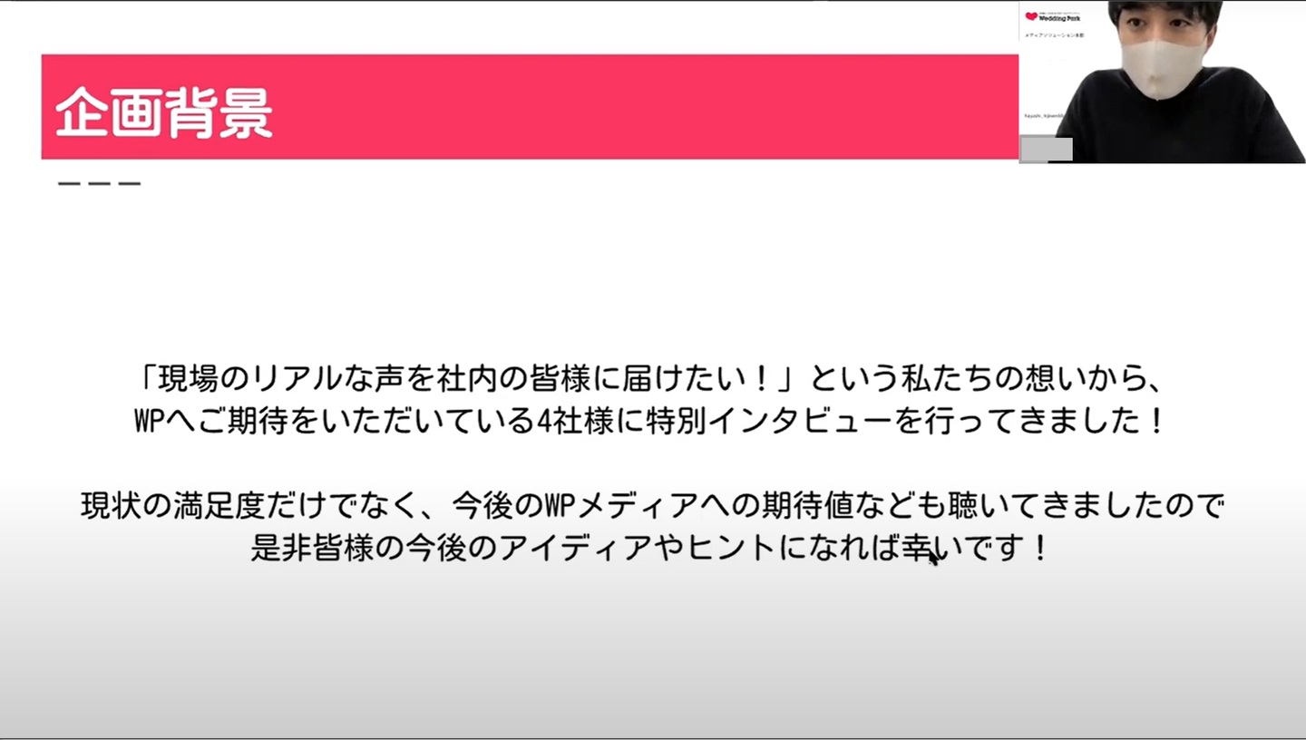 ・メディアソリューション本部による、普段ご支援させていただいているお客様からのウエディングパークへの評価や期待インタビュー動画
